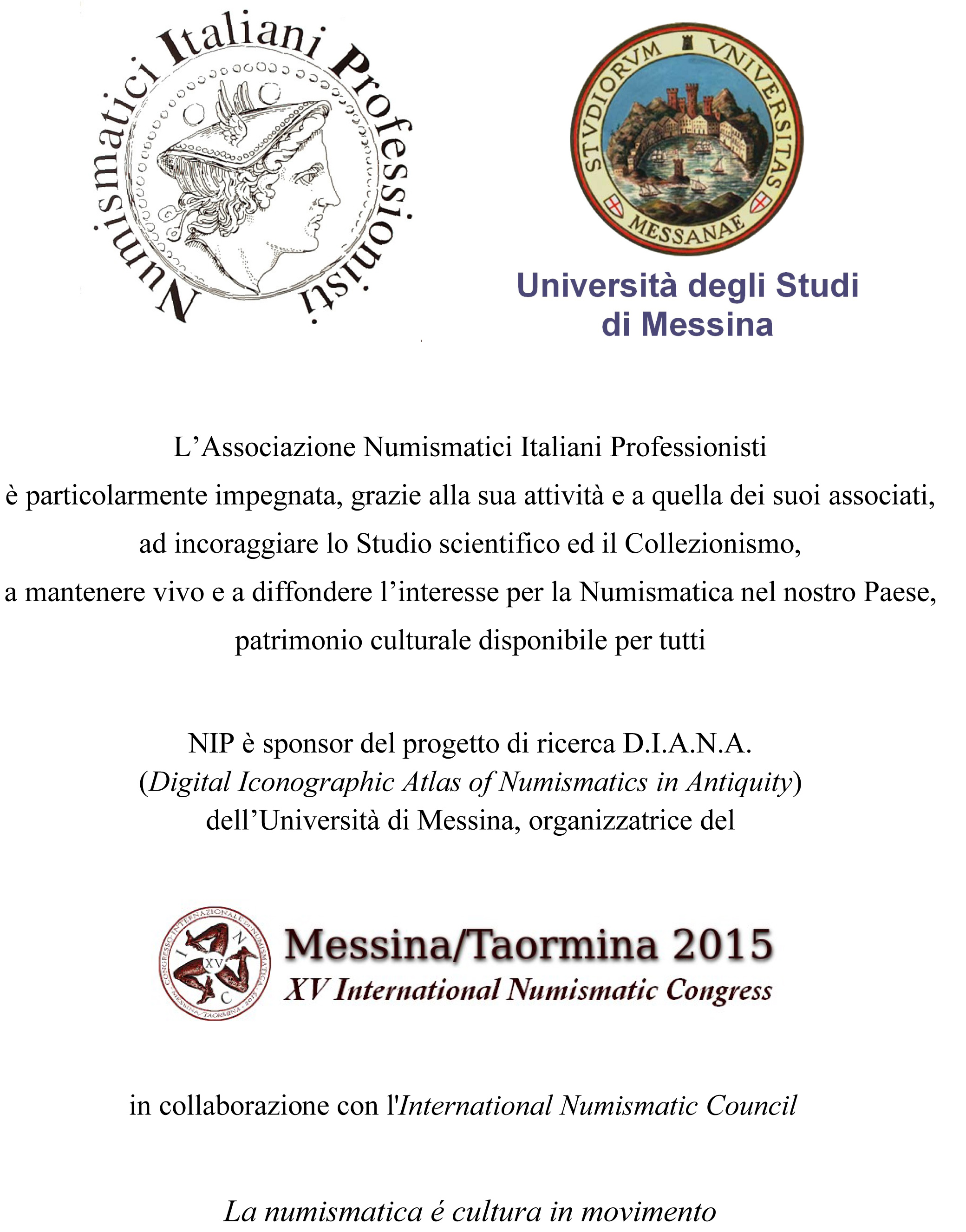 La NIP finanzia con 5000 euro il progetto DIANA - Atlante digitale delle iconografie monetali dell'Antichità promosso dalla Prof.sa Maria Caltabiano, Docente di Numismatica del Dipartimento di Civiltà Antiche e Moderne dell’Università degli Studi di Messina.