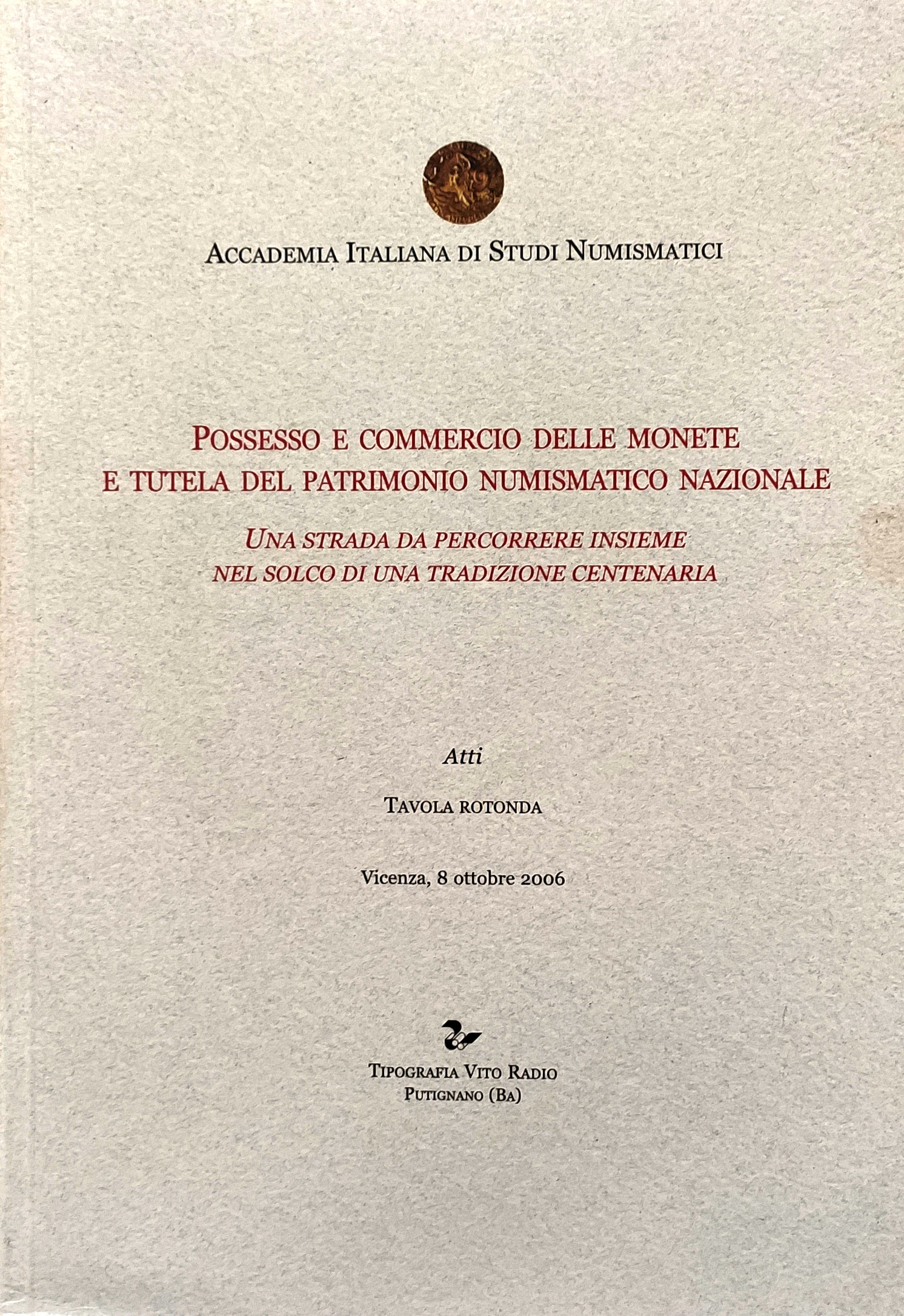 2006 - ATTI TAVOLA ROTONDA - POSSESSO E COMMERCIO DELLE MONETE E TUTELA PATRIMONIO