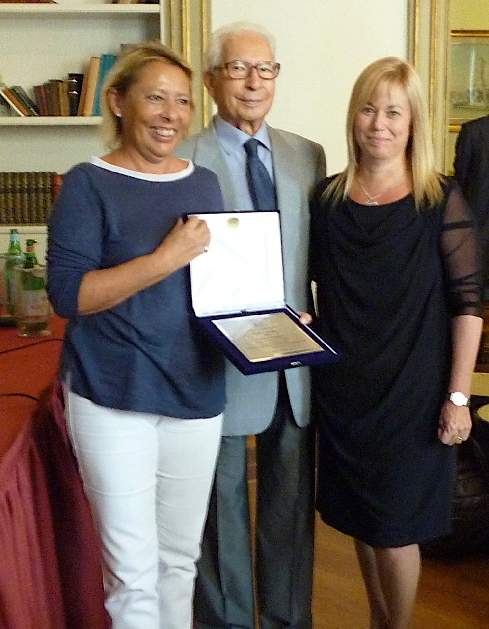 Nella foto, Carlo Crippa e la figlia Silvana ricevono il premio da Barbara Tevere.